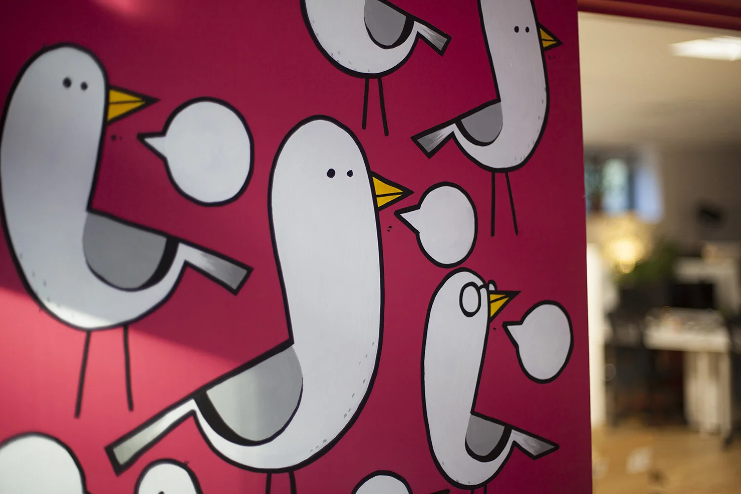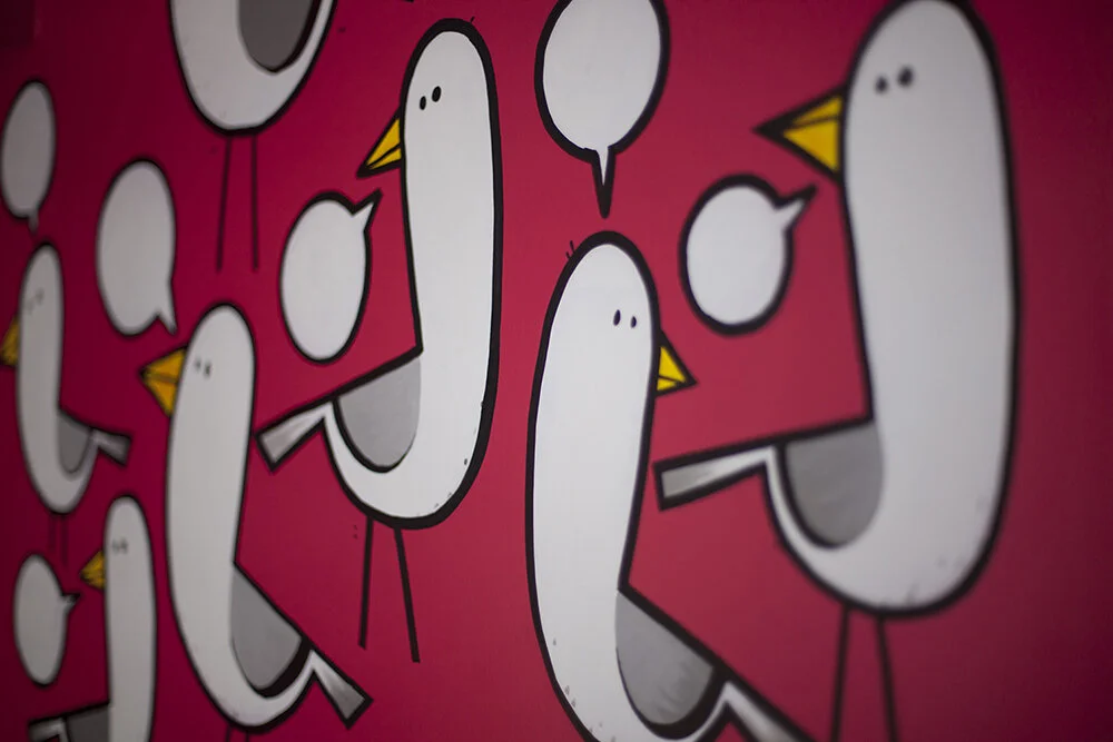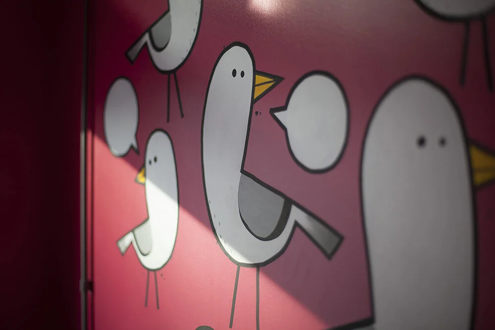 Tilt is a multi-discipline digital agency based in Brighton, covering everything from motion graphics and art direction to building games and branding. We were tasked with providing their entry reception with something simple but vibrant that would capture the essence of their home town. What better way to encapsulate this than with seagulls. In a unique twist, the speech bubbles have been painted with touch-sensitive paint so, when pressed, each bird will call out a different word.