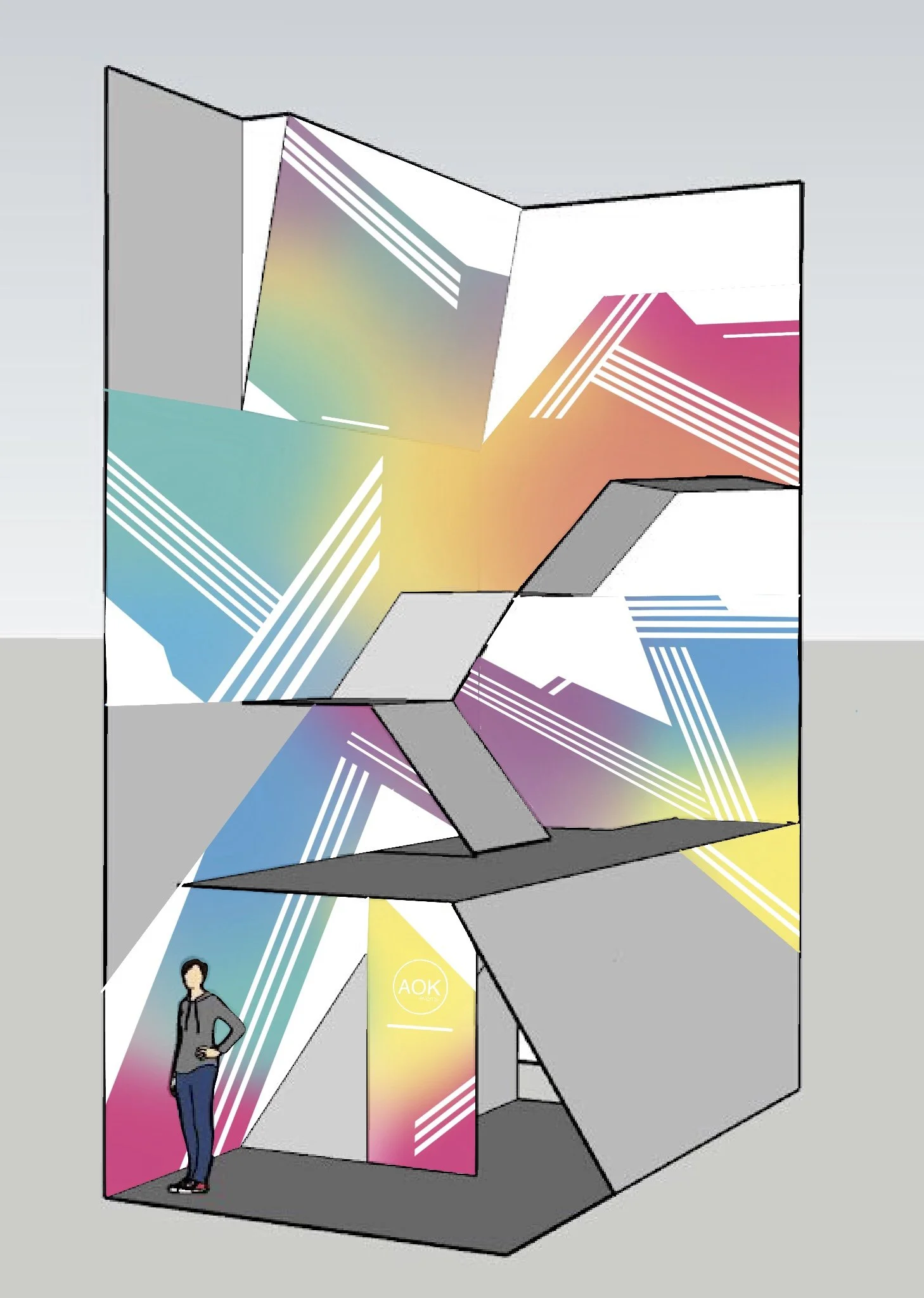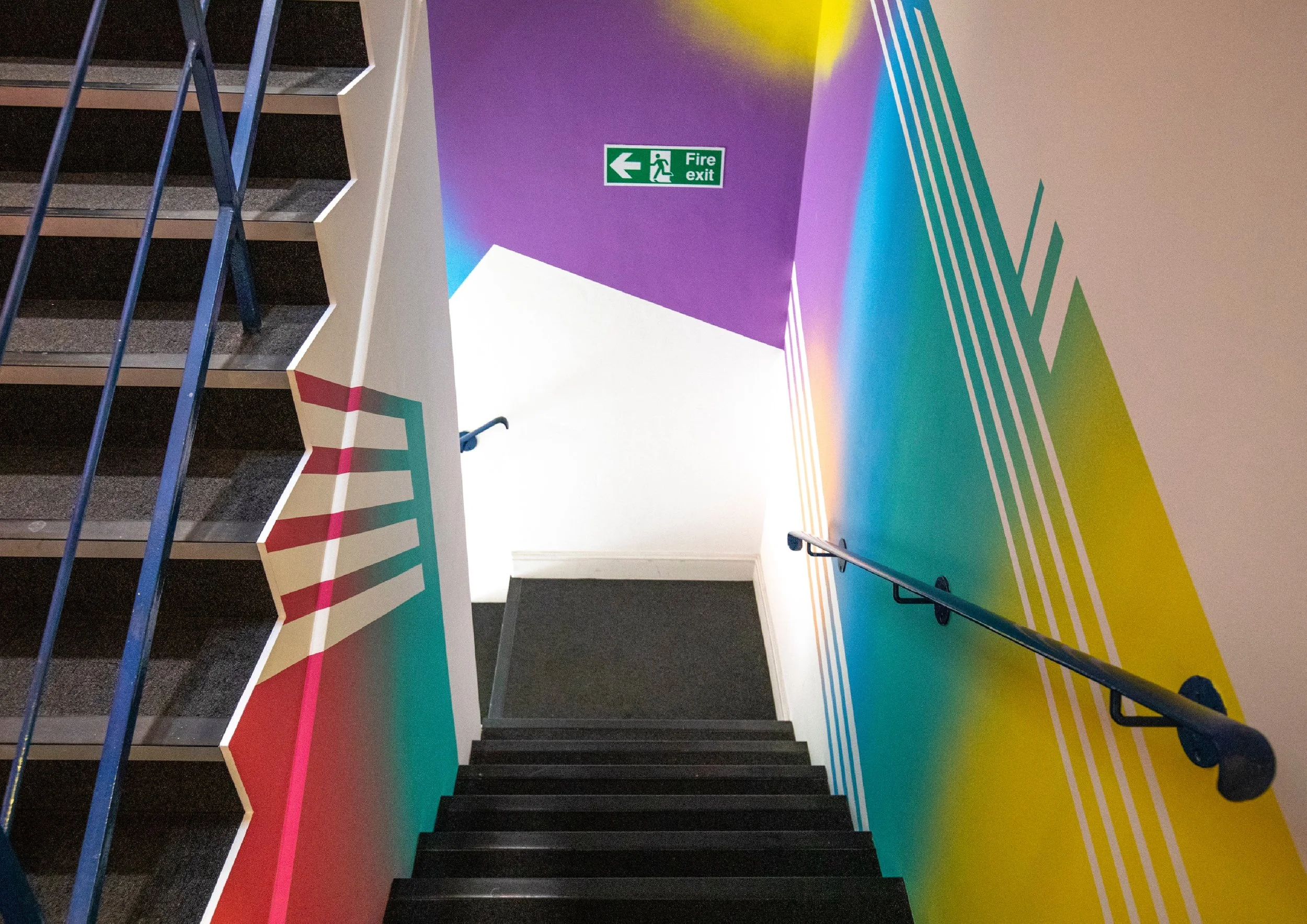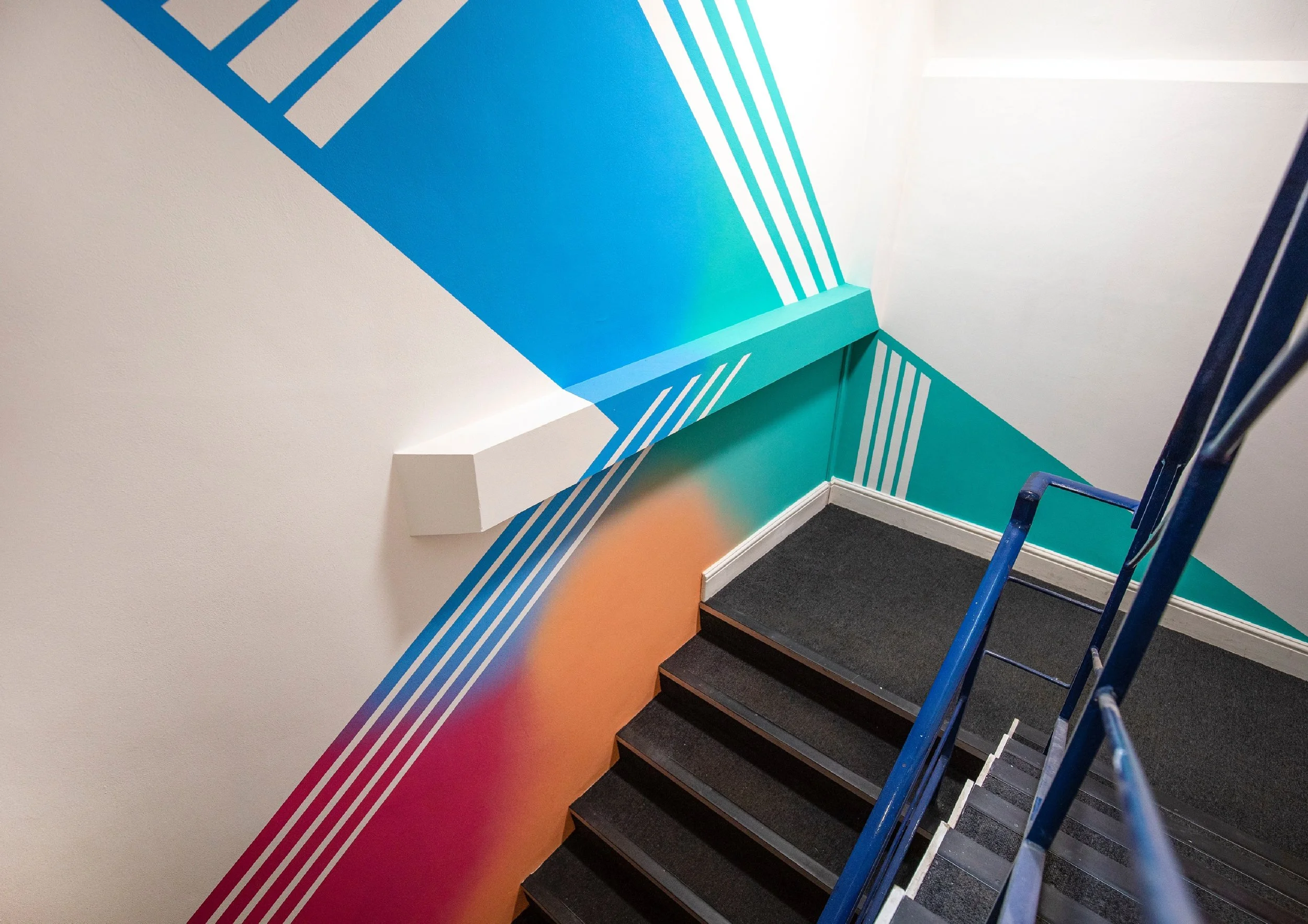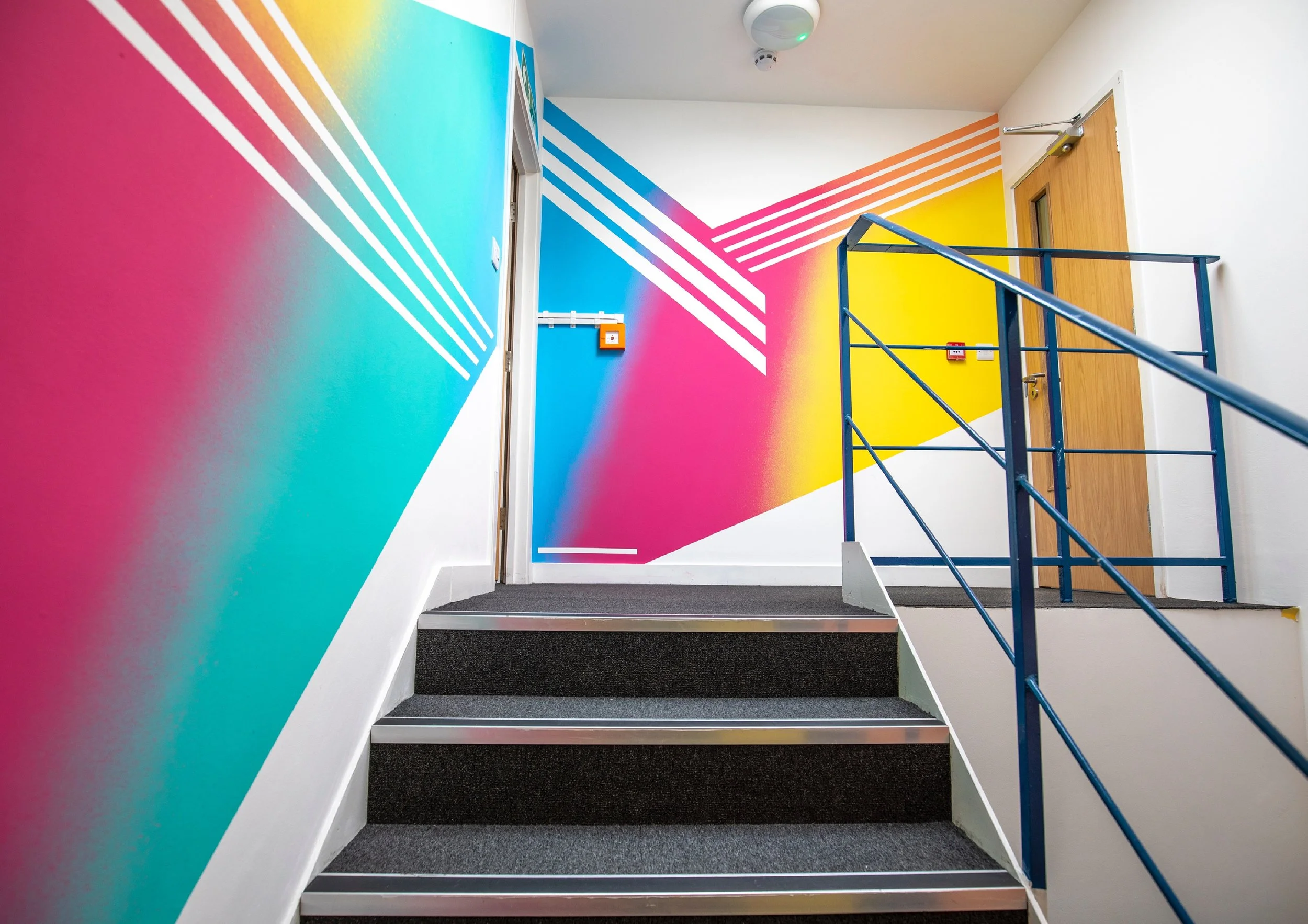 We were asked to design and paint the office of AOK Events in Clapham London. The design had to reflect the company brand colours, it’s energetic approach to events and coordinate well across the interior of the office’s three floors and various features throughout.