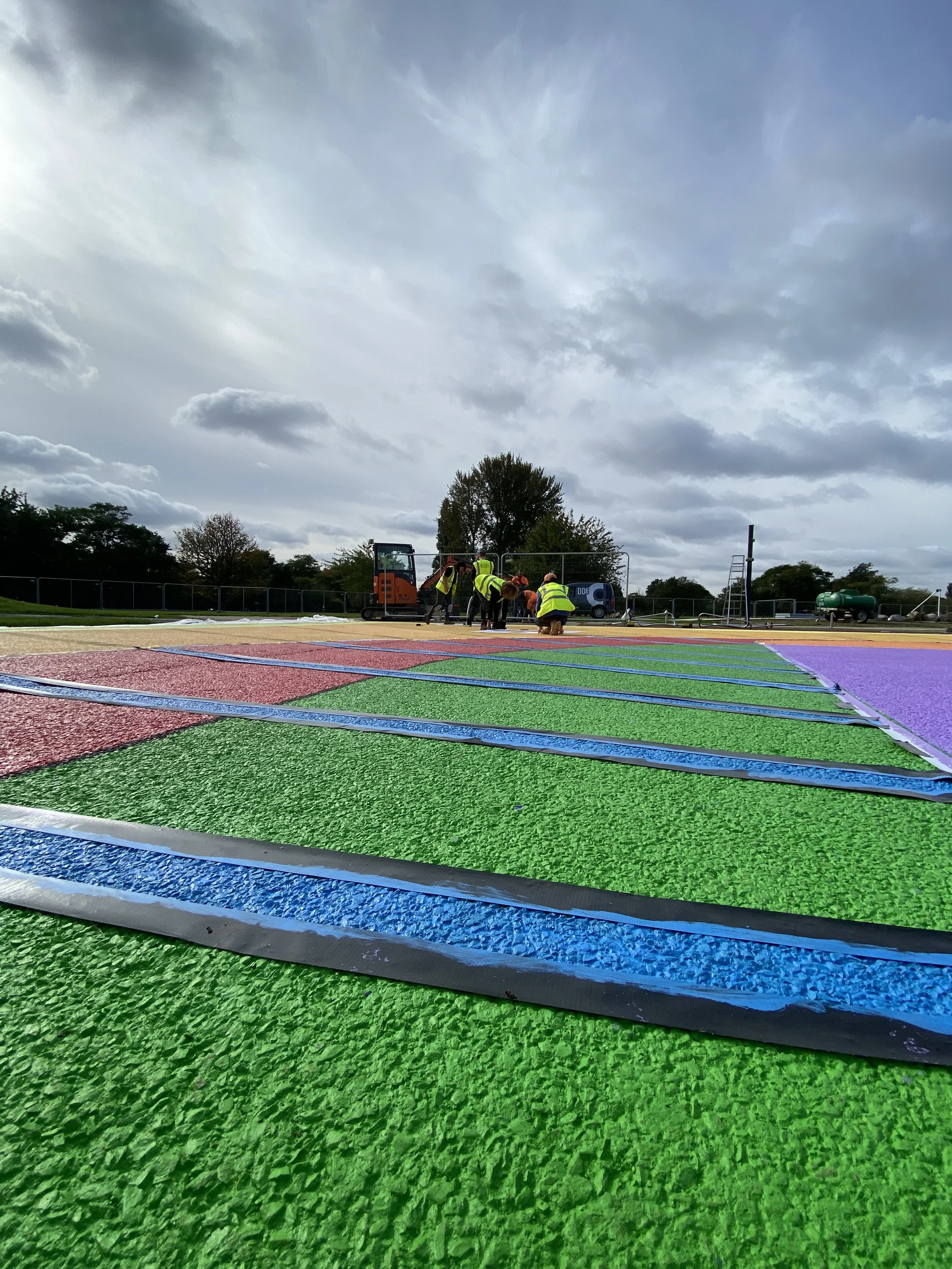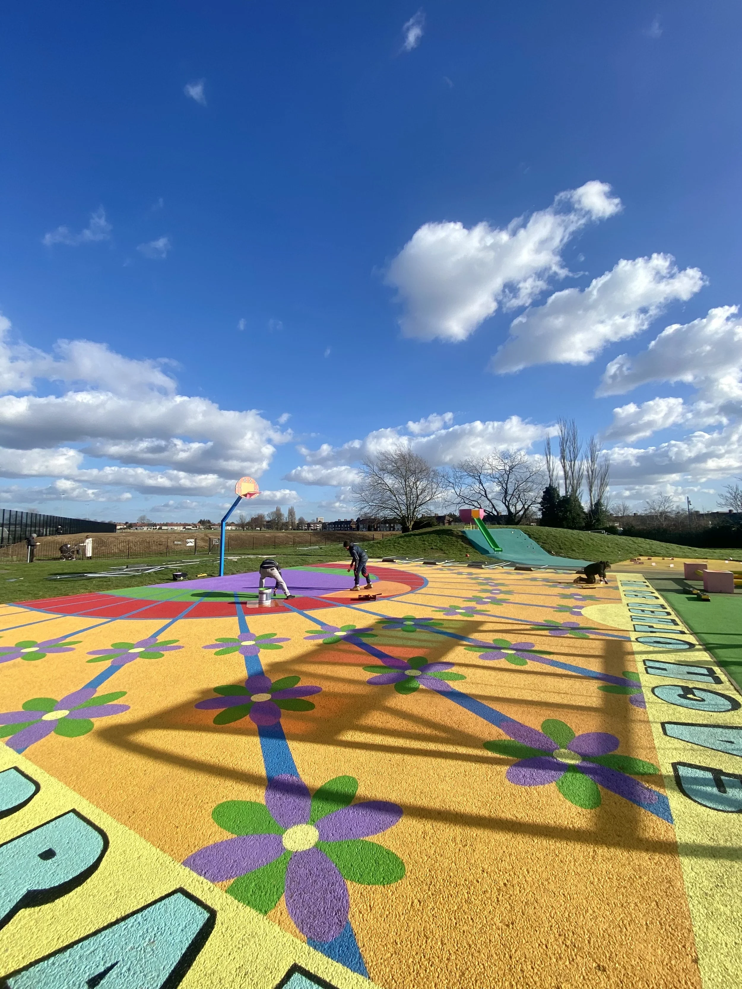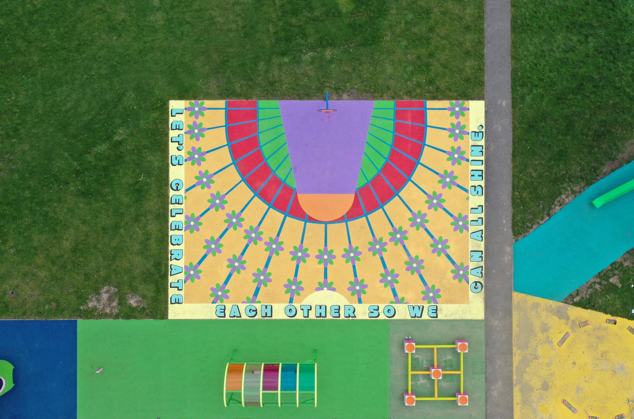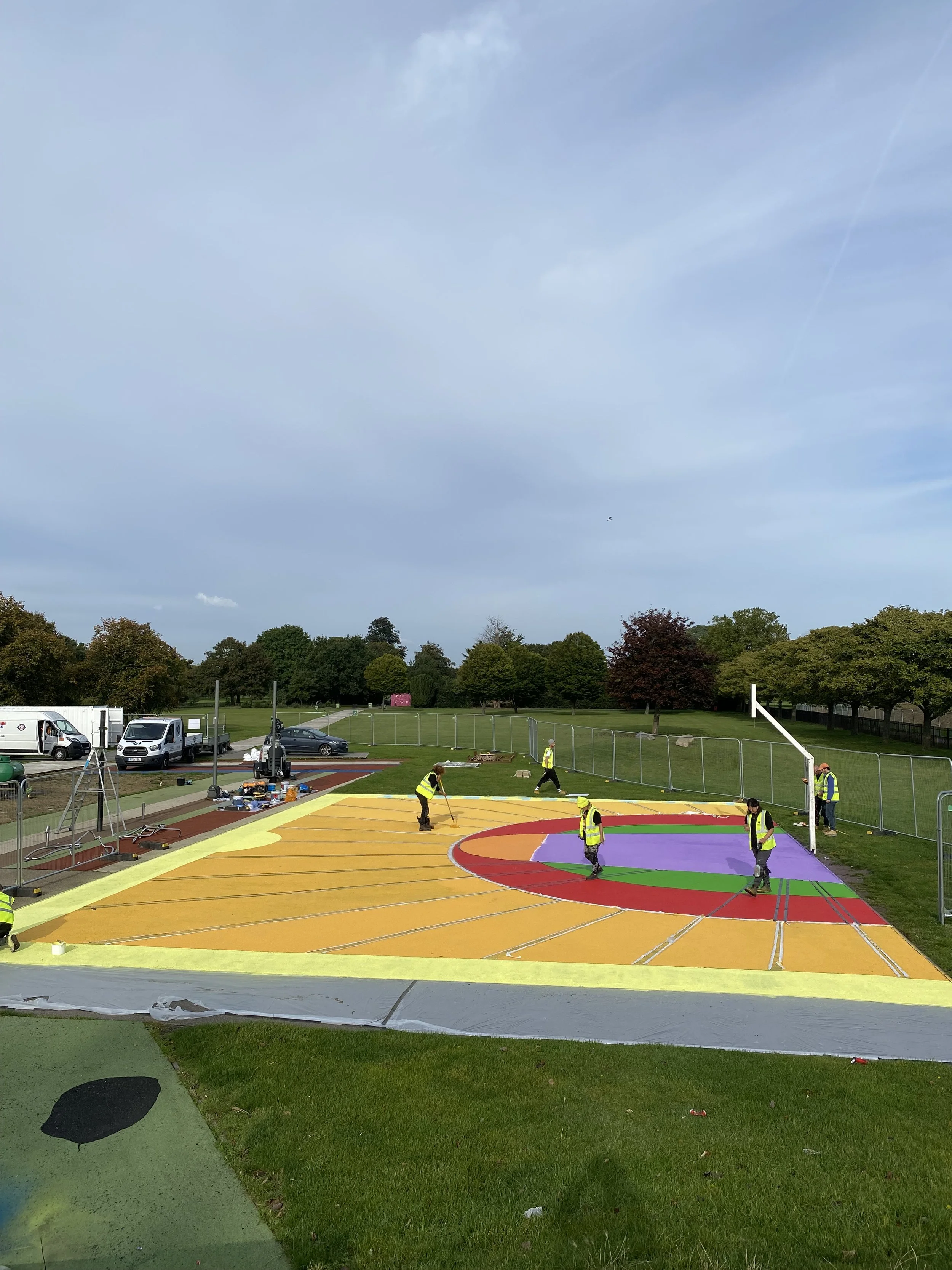 Designed by London Artist Yinka Ilori we were tasked with painting this basketball court as part of a larger public installation for Becontree Estate London.