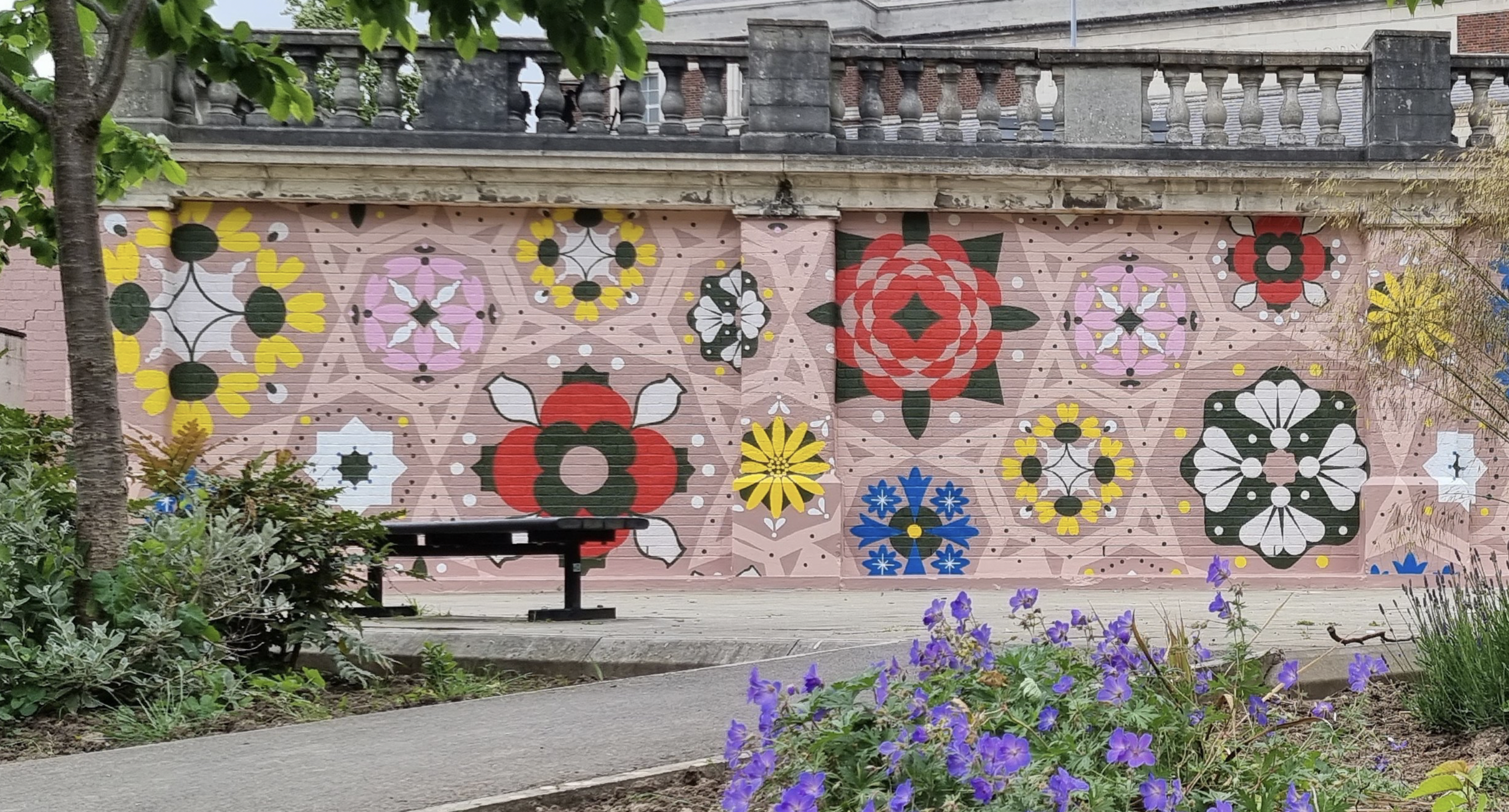 Several workshops were held with the local community and the pupils of Gladstone Primary School in developing the mural designs. Discussions were also held with the residents of Golau Caredig, a care home adjacent to the gardens to speak with residents about their memories of the Gardens and what the space meant to them.