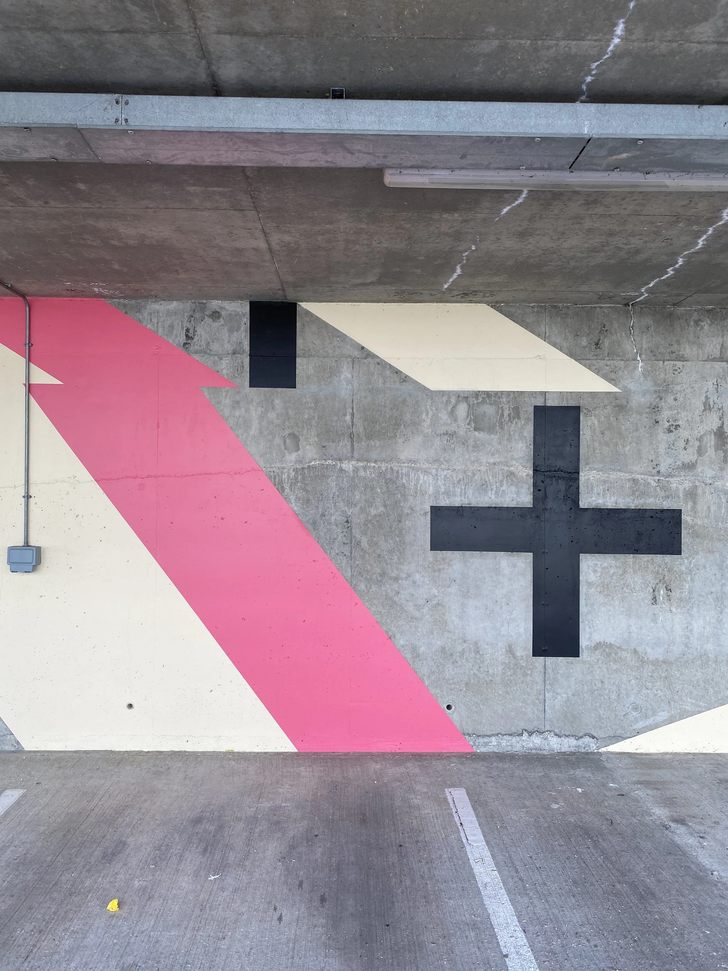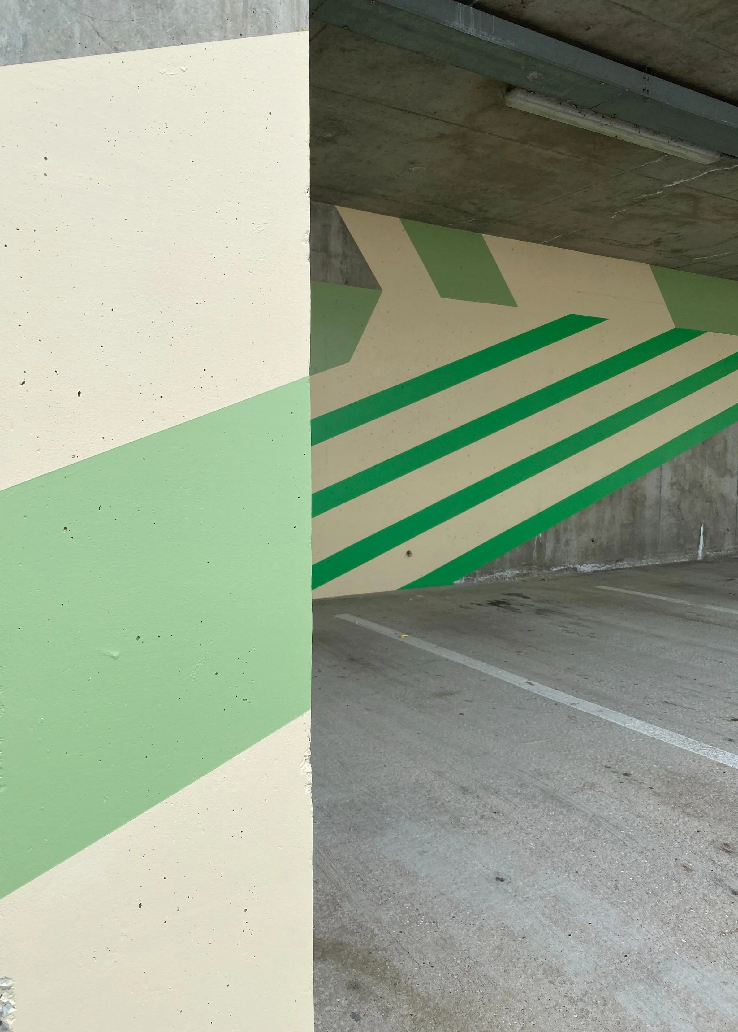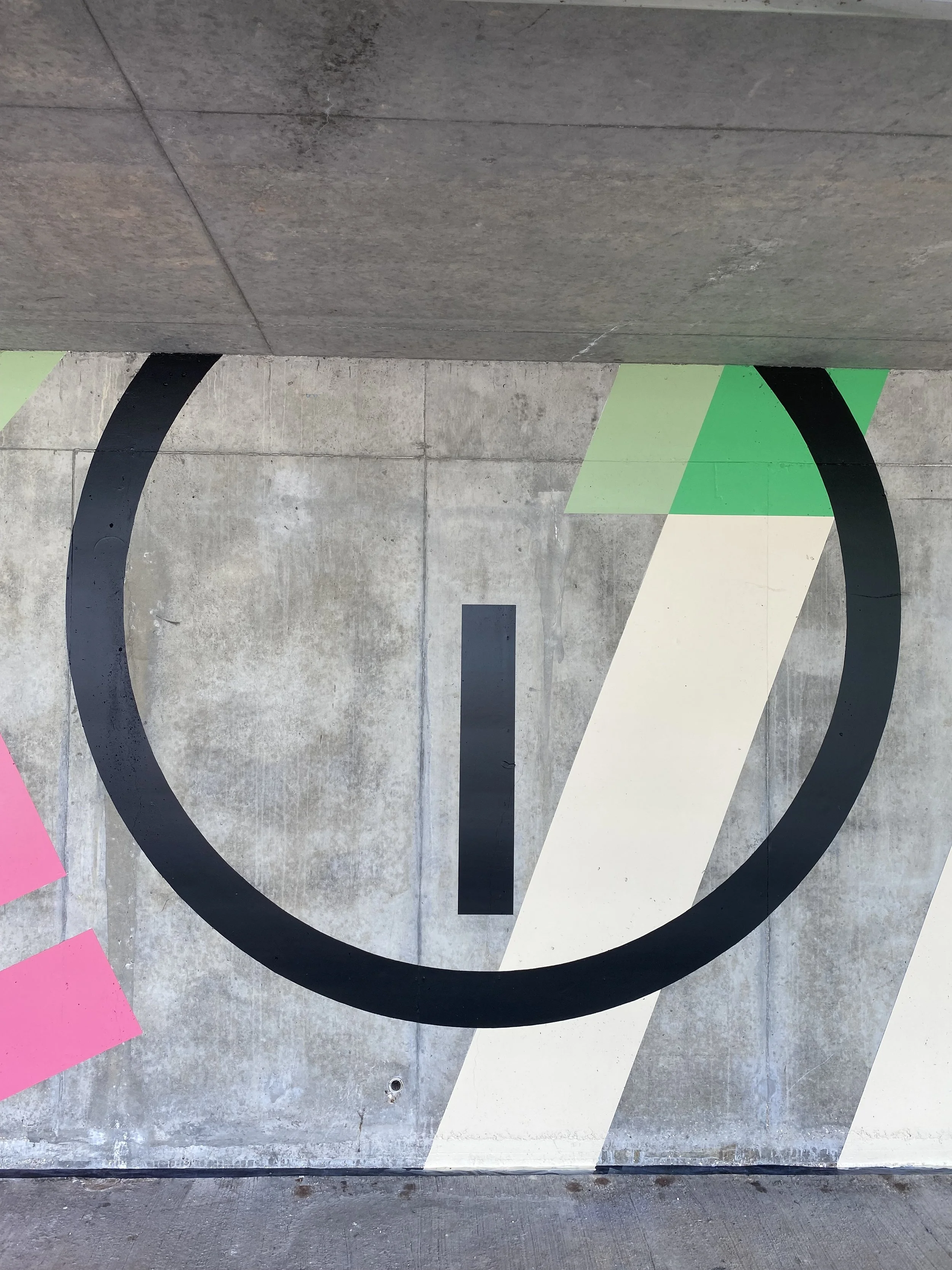 We were asked to design and paint an exterior concrete retaining wall for Here + Now, an office campus development in Thames Valley Business Park, Reading. At over 100 meters long and 6m high this is one of our largest exterior murals to date.
