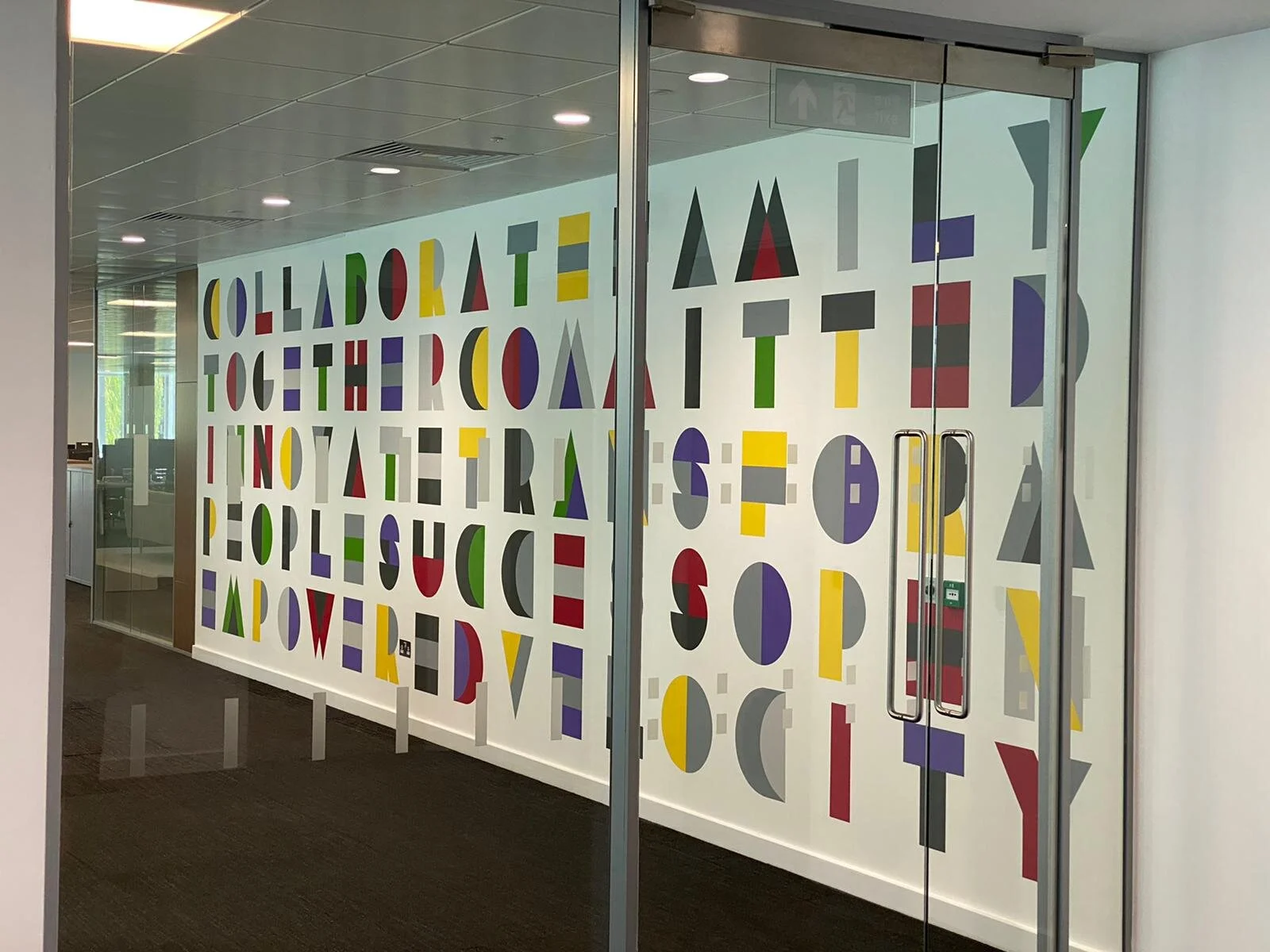 We were approached by Imagination House, Kings Langley to create two murals for their recently developed offices. The brief was to create a piece that was stylish, graphical in nature and represented and celebrated the companies core values.
