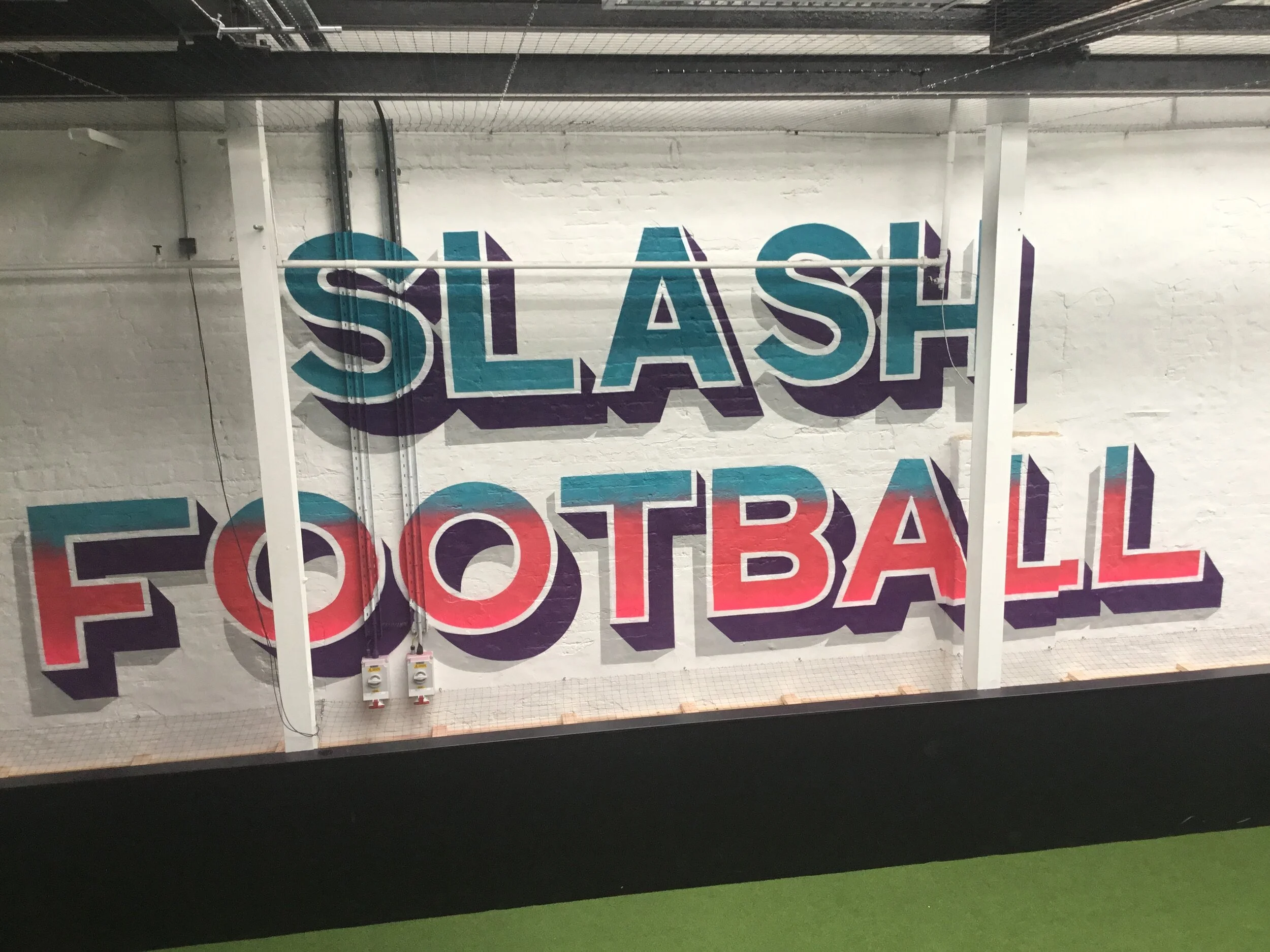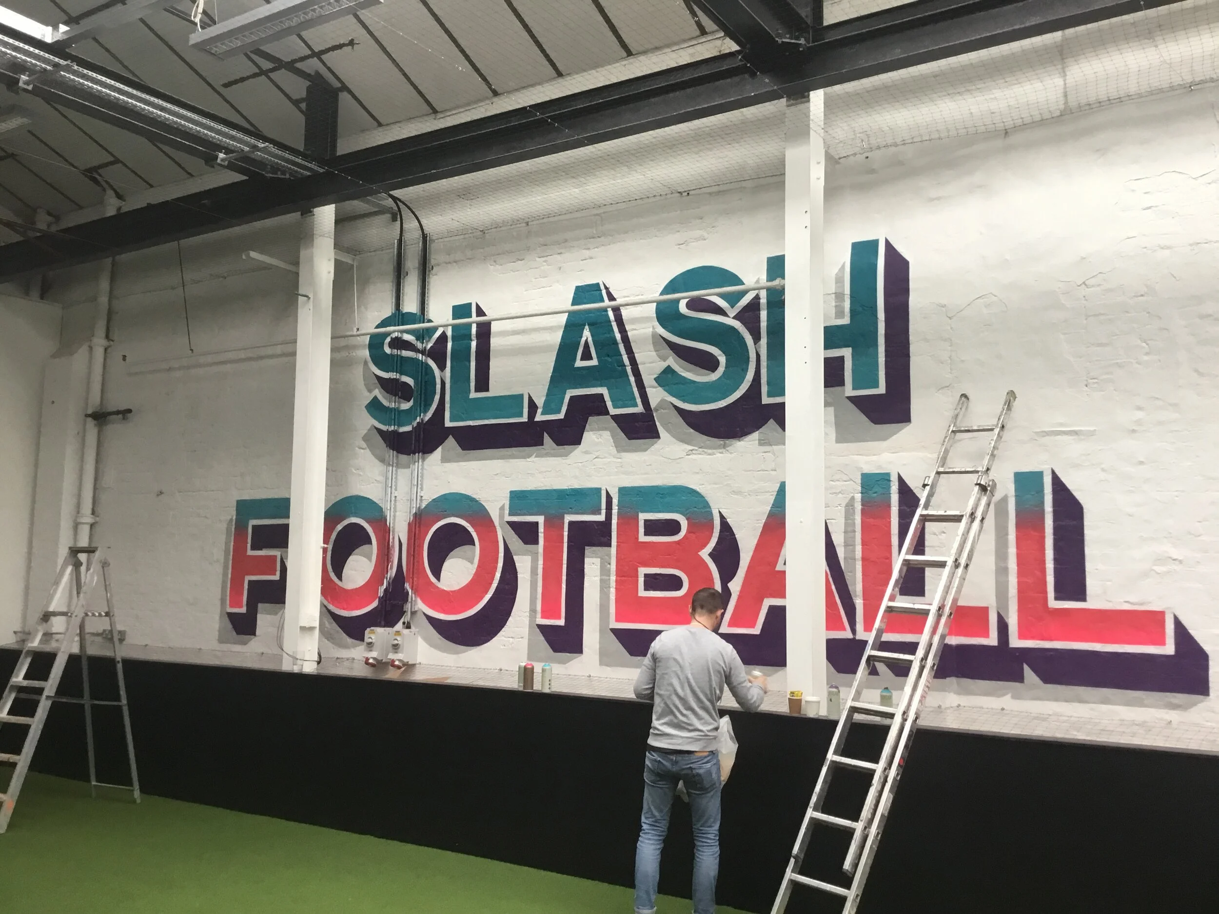 Brave Bison is the online video business redefined. Expanding their studio, we were asked to provide a piece for their indoor football pitch and the Slash Football Network, a company who they work closely alongside with. The brief was for bold, clean and sharp lettering. We were fortunate enough to work alongside the typography master Gary Stranger to produce this piece.
