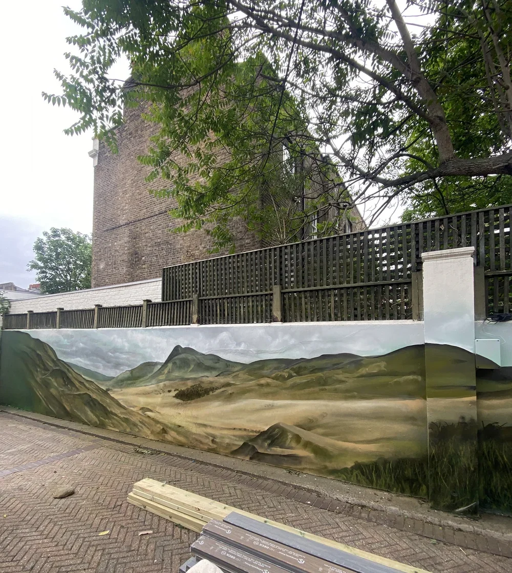 The mural, created in collaboration with Artist Curtis Hylton, drew directly from the Scottish Highlands. Rolling forms, softened edges, and a natural colour palette echoed open landscapes rather than fixed viewpoints, allowing the artwork to feel expansive within the constraints of the area.