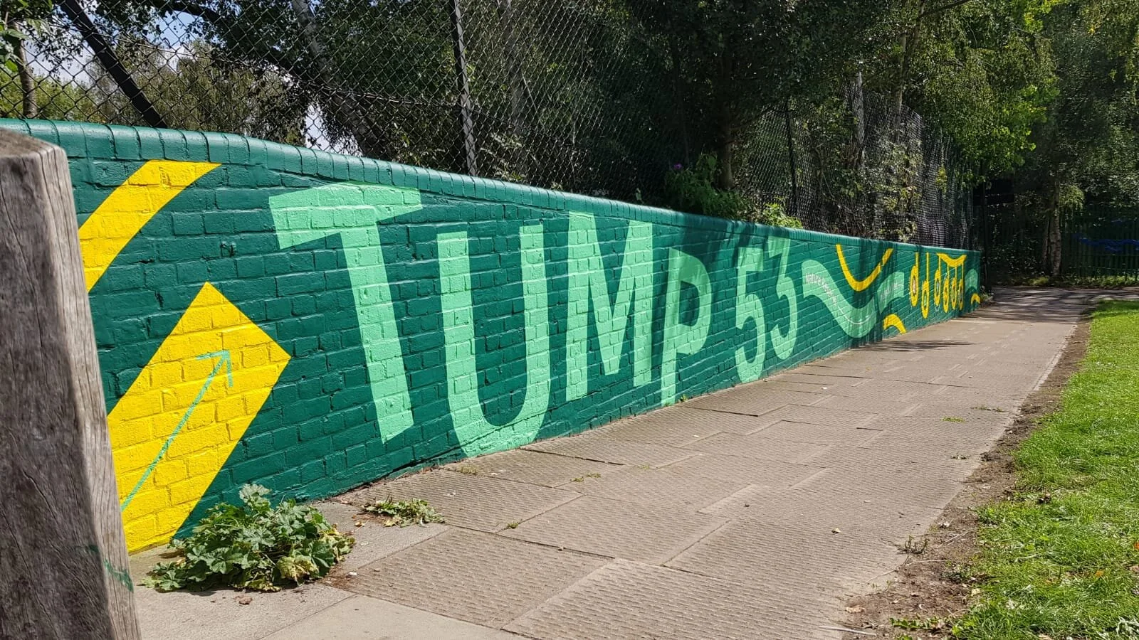 As part of the continuing development of the Thamesmead area, we were asked to paint this exterior wall for the TUMP 53 Nature Reserve. Working alongside Accent London, the piece was created using a mixture of exterior emulsion, heat wrap vinyl and spray paint.