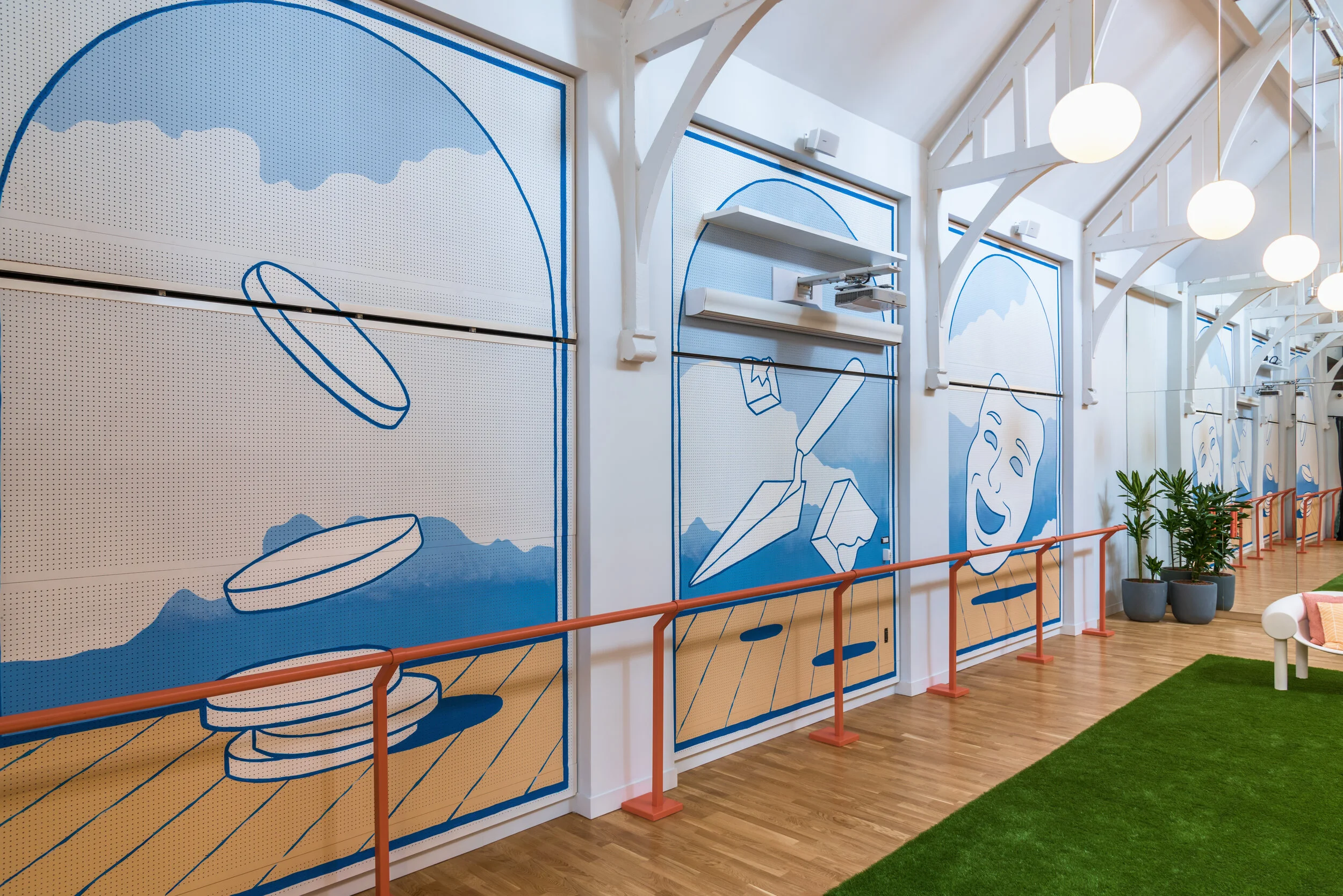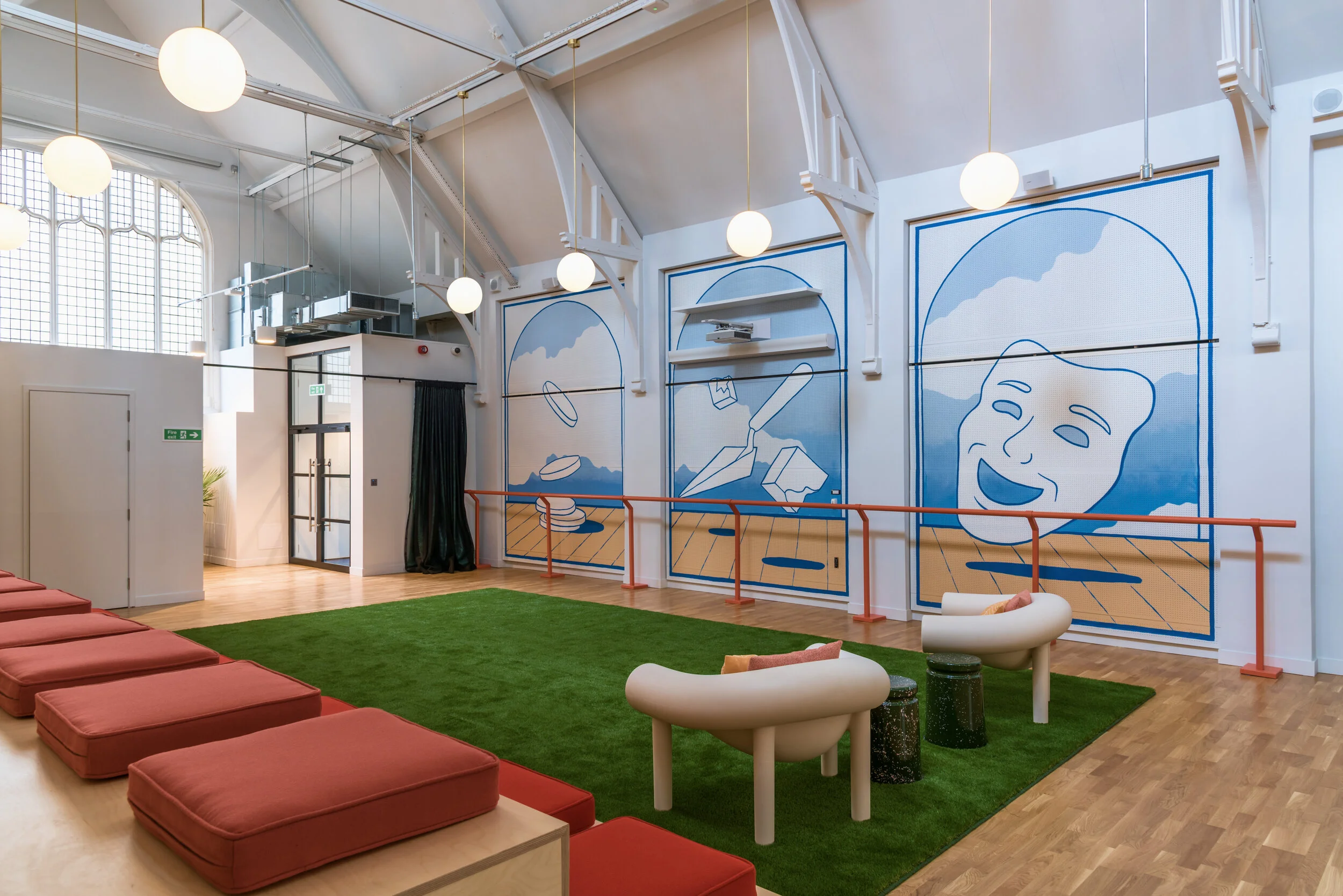 The design itself took inspiration from the surrounding area and local history of the Camden Borough. The building itself had formerly been the Church of the Holy Trinity and is a grade II listed building. Now converted into a space for workshops, seminars and events within the Wework campus.