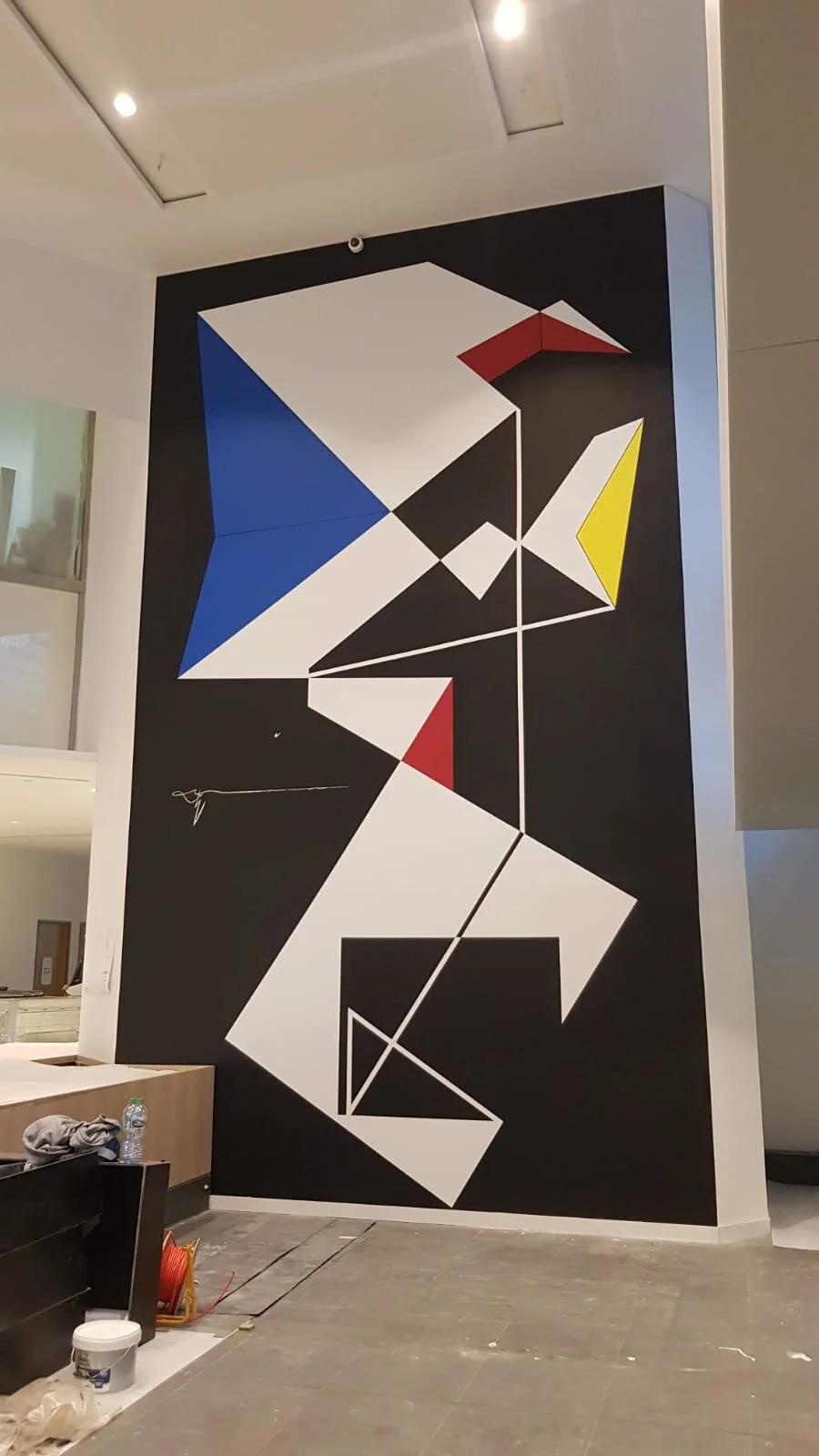 We were employed to hand paint this large abstract piece for the entrance of Wework Canary Wharf